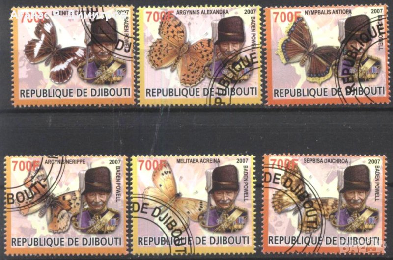 Клеймовани марки (6) Фауна Пеперуди 2007 от Джибути.