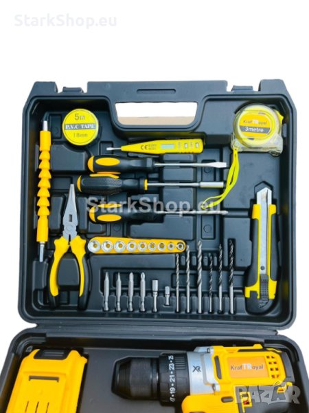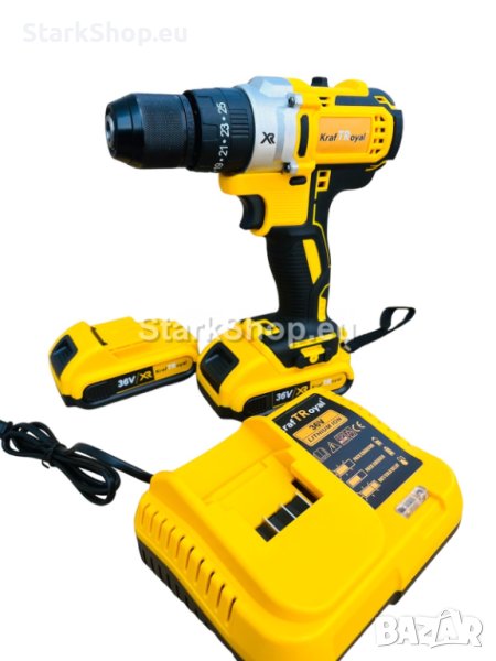 Последно поколение 36V Li-Ion компактен ударен винтоверт-бормашина Kraft Royal XR 36v 8AH. Ултра компактен и лек дизайн, позволяващ използване в тесни пространства. Двускоростна изцяло метална предавка за по-интензивен режим на работа и по-дълъг живот на инструмента. 16 степени за регулиране на въртящия момент за оптимална прецизност в режим отвертка. Интелигентен дизайн на спусъка позволява цялостен контрол на приложенията. Компактен 10 мм безключов патронник с единична втулка с автоматично блокиране на шпиндела за бърза и лесна смяна на накрайници с една ръка. Ярки бели LED светлини с функция забавяне за подобрена видимост и функционалност. Подобрен ергономичен дизайн и гумирана ръкохватка за повече комфорт. Стоманена скоба за колан и здрав магнитен държач за накрайници за лесно съхранение.