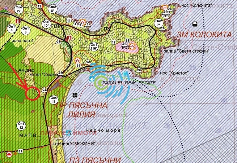 Р-20070994 Имаме удоволствието да представим на любителите на Изгревите край морето и древния град Аполония днешен Созопол ,лятната културна столица на България, изключително атрактивен имот ! Парцел, намиращ се на 350 - 400 метра от морския бряг( плаж 'Каваците'). Имота се намира в края на урбаницзирана зона , в близост хотел 'СМОКИНИ' трафопост, и вода. Парцела е с панорама на ИЗТОК към морето изключително слънчев имот. Терена е с лека денивелация , поради уникалното си разположение е подходящ за построяване на еднофамилни къщи . Очаква се добра възвръщаемост на инвестицията ви. Според ОУП на гр. Созопол терените в местността Синутидис са отредени за ниско застрояване ( Ок4) Територии за курорт и допълващи дейности с максимална височина на застрояване на сградите до 10 м. височина и плътност на застрояване до 30 %, КИНТ макс 1. За имота не е изготвян ПУП.Имота с изготвянето на новия ПУП може да бъде разделен на две УПИ та .Имате привилегията да закупите вашият имот с посредничеството и помощта на най добрите професионалисти в бранша. За желаещите да закупят имота с кредит предлагаме преференциални условия като наши клиенти от утвърдени в годините водещи Банки. Пълно съдействие при подготовката на документите, проверка за тежести, изготвяне на оценки, правни становища и др. Очакваме ви да се видим скоро !