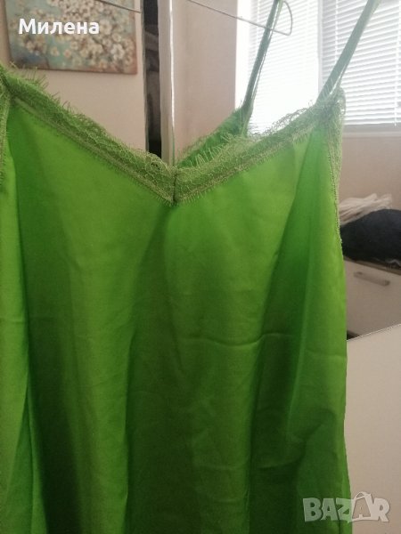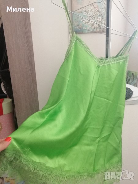Нов зелен топ от сатен с мека дантелка → Обява 41678964