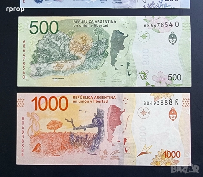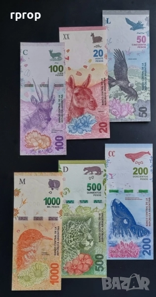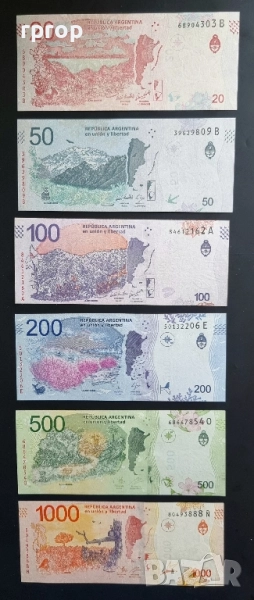Аржентина. 20, 50 ,100 ,200,500 и 1000 песо. 2015 - 2024 година. UNC. 6 бройки. → Обява 41680314