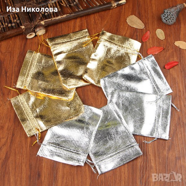 Подаръчни торбички в сребърен цвят.