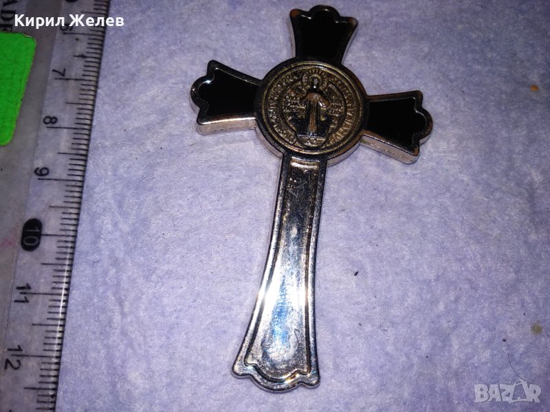 ГОЛЯМ СТИЛЕН СРЕБРИСТ МЕСИНГОВ КЕЛТСКИ ТИП ДВУСТРАНЕН КРЪСТ с НУЖДА от ЛЕКА РЕСТАВРАЦИЯ 38651