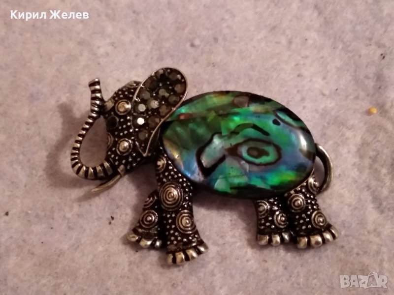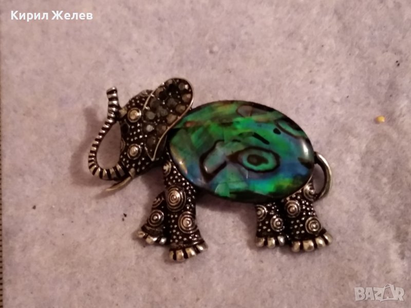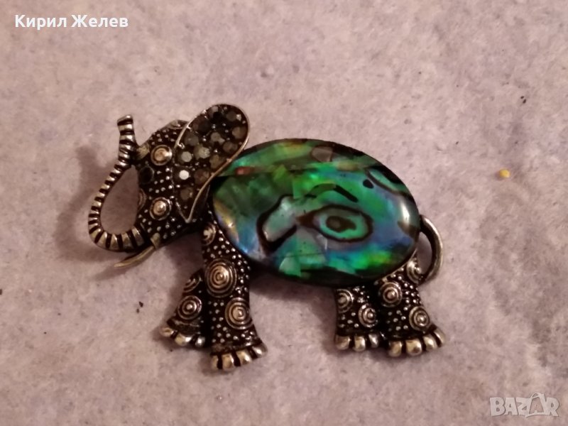 СИМПАТИЧЕН ФИГУРАЛЕН СРЕБРИСТ МЕСИНГОВ МЕДАЛЬОН СЛОНЧЕ с КРИСТАЛЧЕТА и СЕДЕФЕН ТИП УКРАСА 38650