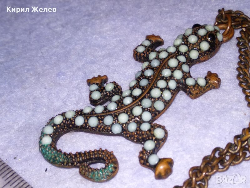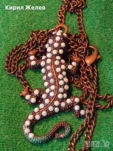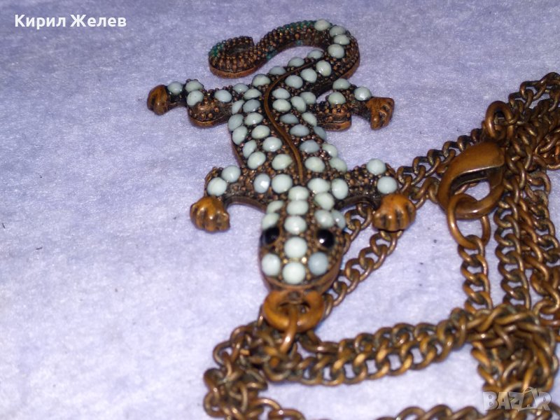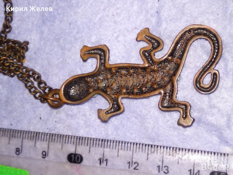 ФИГУРАЛЕН МЕДЕН АРТ МЕДАЛЬОН ИГУАНА ГУЩЕРЧЕ с ПОМЕДНЕНА ВЕРИЖКА от НЕРЪЖДАЕМА СТОМАНА 21389