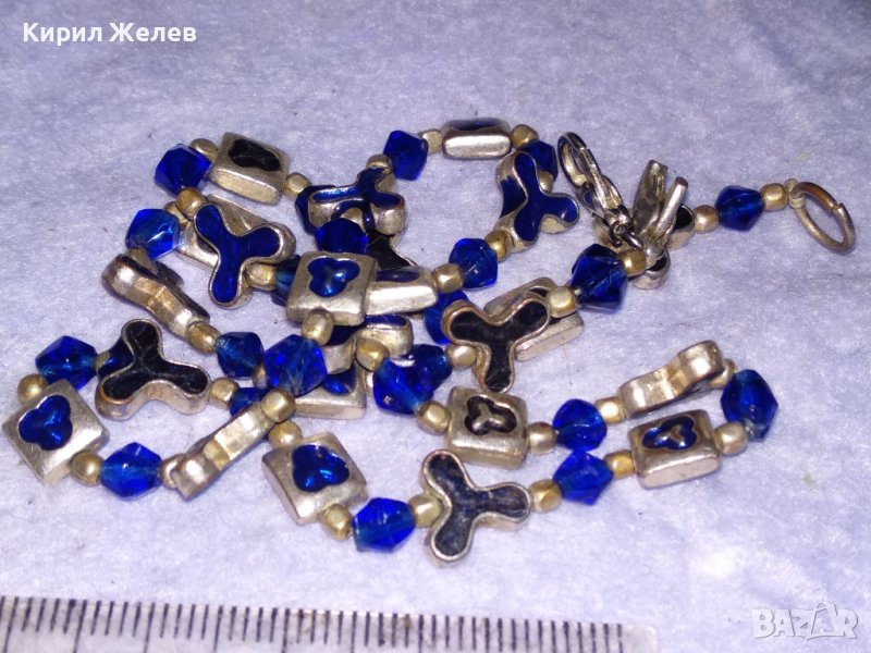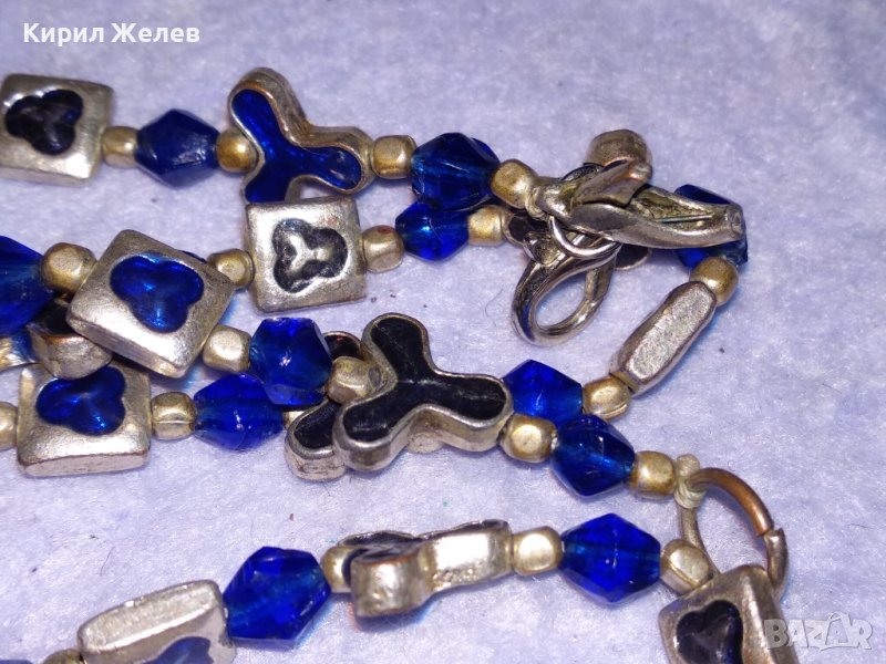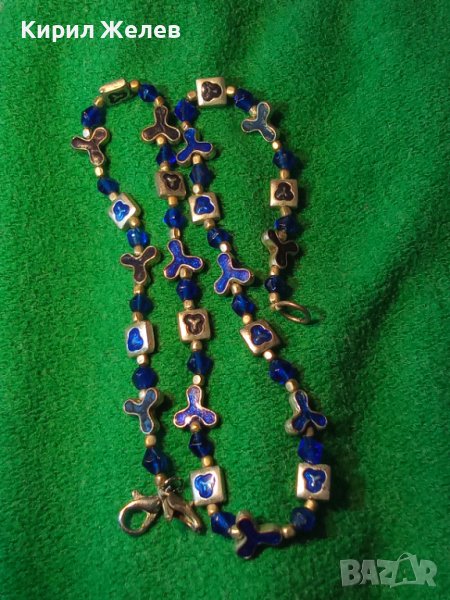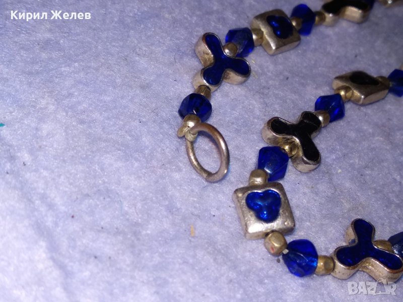 ПРЕКРАСНО ПОСРЕБРЕНО ЕМАЙЛИРАНО КРИСТАЛНО АРТ НУВО СТИЛ МЕДНО КОЛИЕ 38682