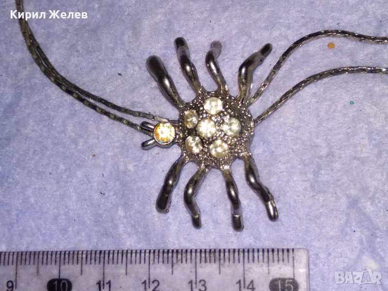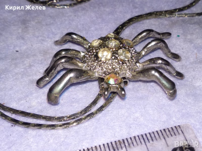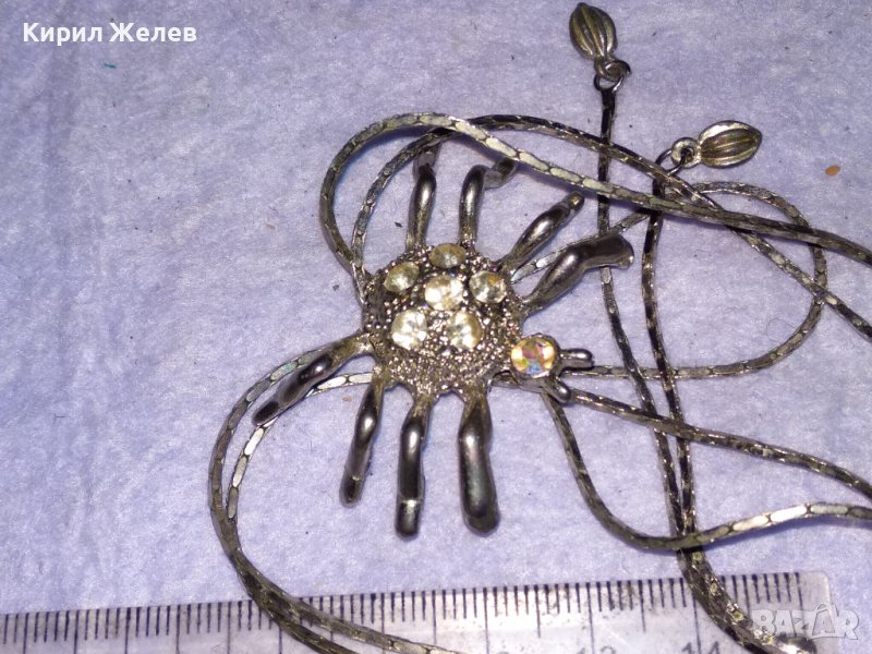 ЕФЕКТНО ПОСРЕБРЕНО КОЛИЕ с ФИГУРАЛЕН ПЕНДАНТ ПАЯЧЕ с ИСКРЯЩИ КРИСТАЛИ 38658