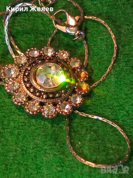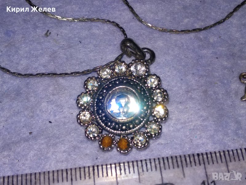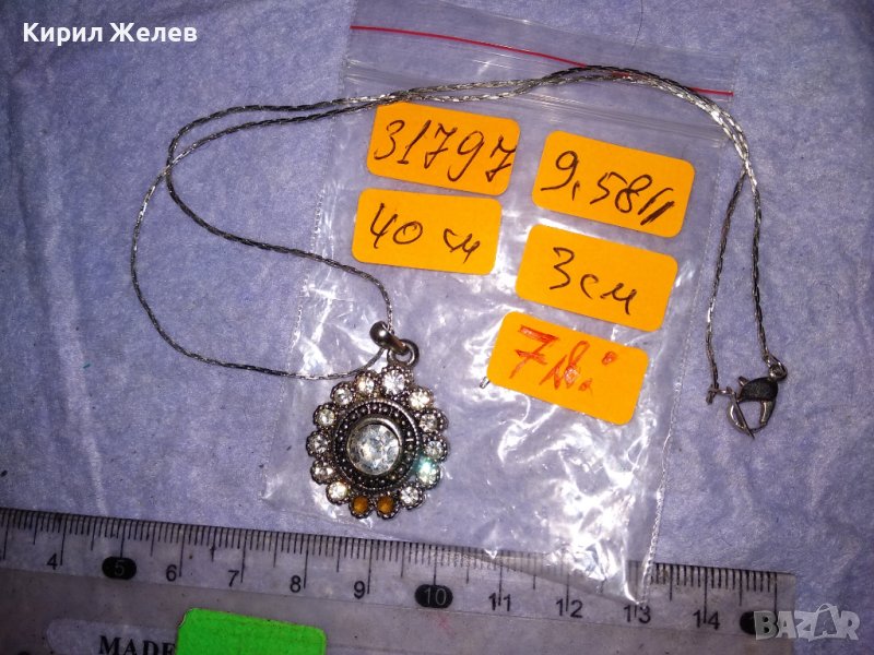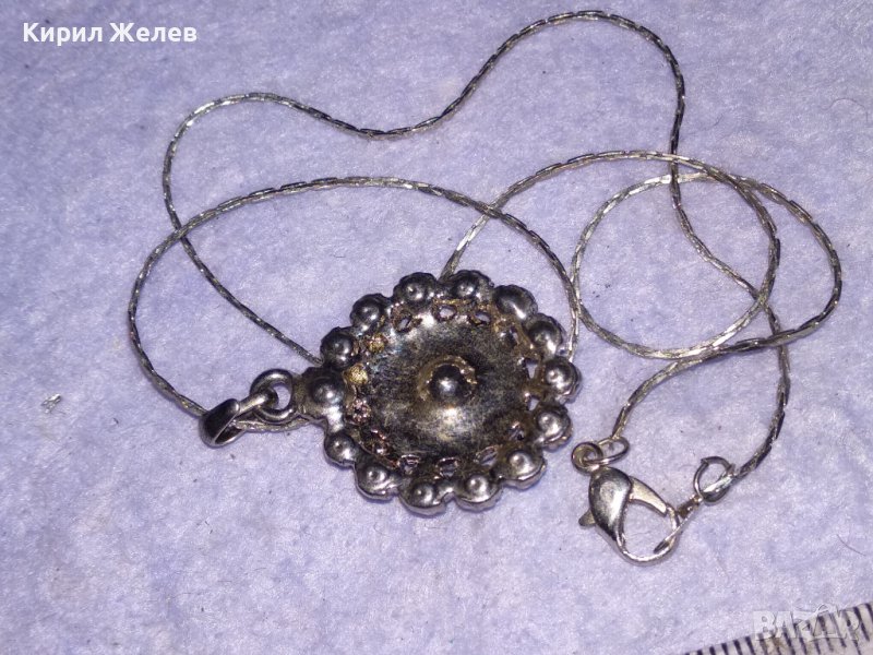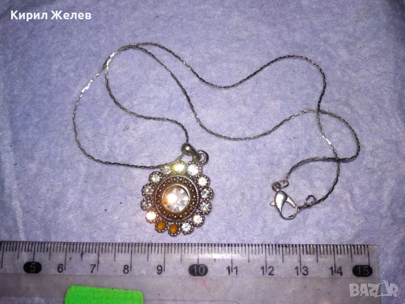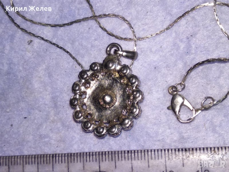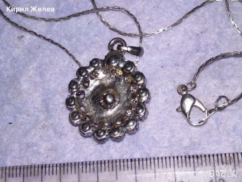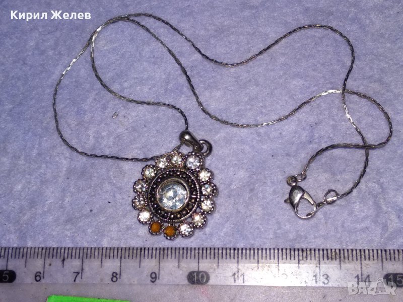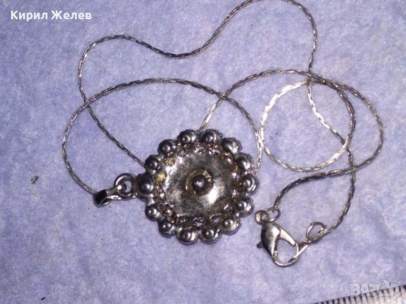 СРЕБРИСТО ВИНТИДЖ АРТ КОЛИЕ с МЕДАЛЬОН с ИСКРЯЩИ ФАСЕТИРАНИ КРИСТАЛИ 31797