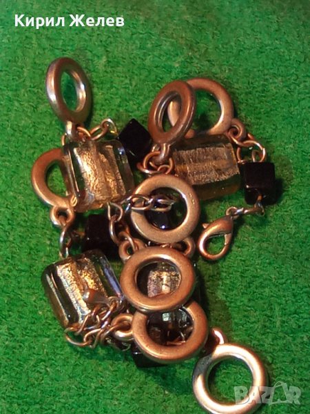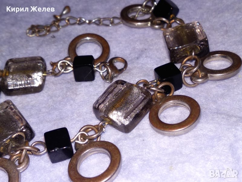 ШАРМАНТНА ПОМЕДНЕНА ВИНТИДЖ АРТ ГРИВНА от БЛАГОРОДНА СТОМАНА с ВЕНЕЦИАНСКИ ТИП ЦВЕТНО СТЪКЛО 37381