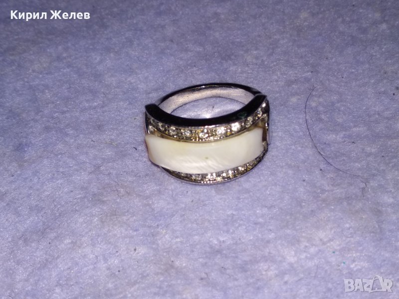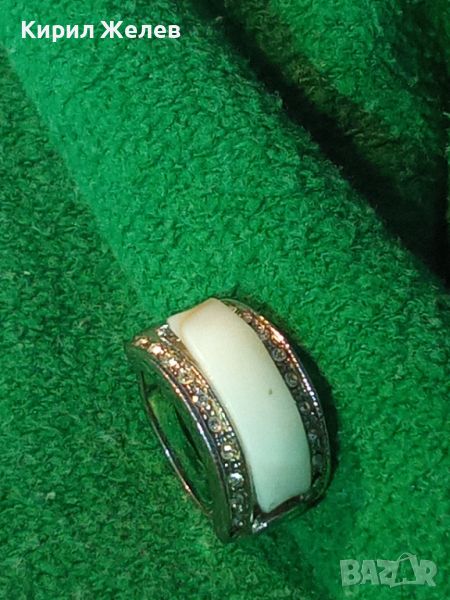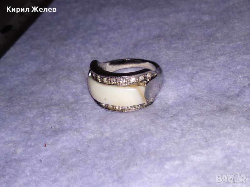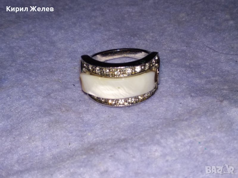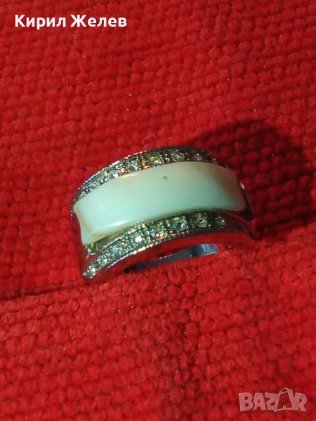 СТИЛЕН КРАСИВ СКЪПОЦЕНЕН АРТ ПРЪСТЕН НИКЕЛИРАНА БЛАГОРОДНА СТОМАНА с ЦИРКОНИ и БЯЛ АХАТ 30796