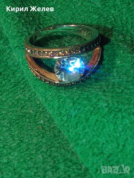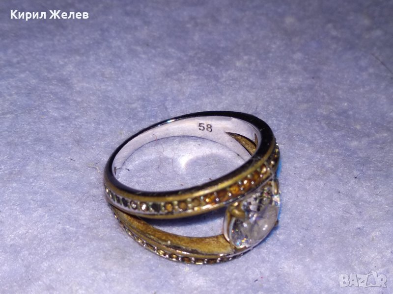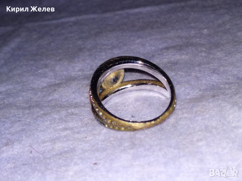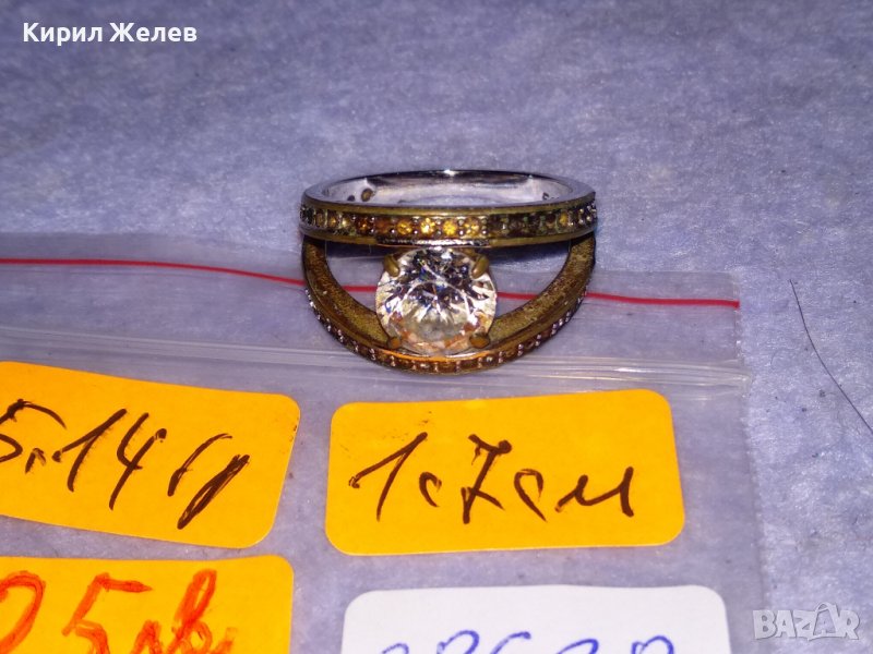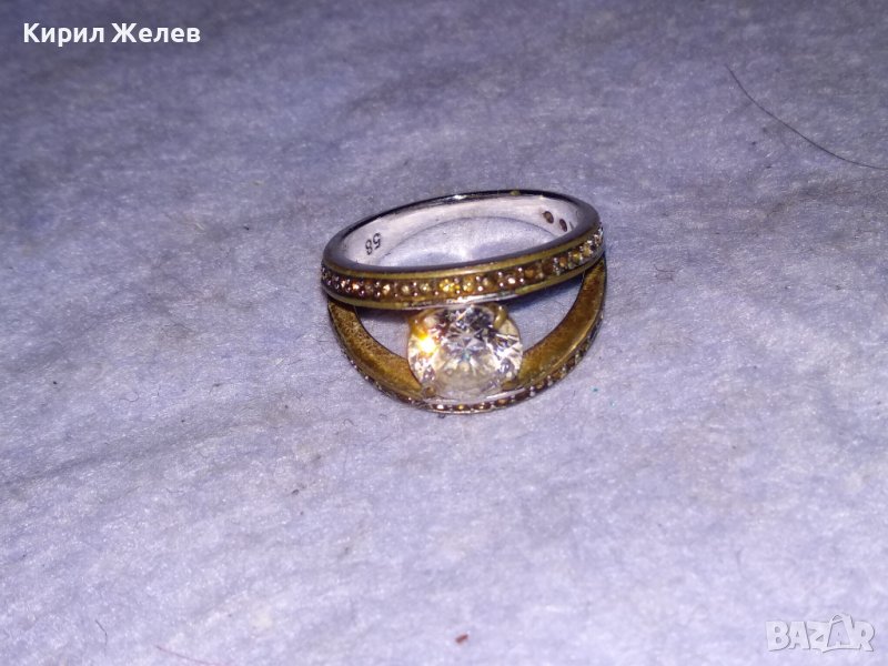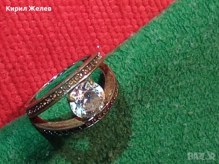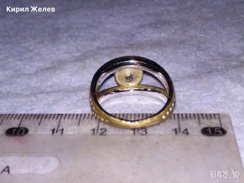 Стар СКЪПОЦЕНЕН БРОНЗОВ ПРЪСТЕН с МАСИВНА БЯЛА ПОЗЛАТА МАРКИРОВКИ и БРИЛЯНТНО ФАСЕТИРАН ЦИРКОН 38638