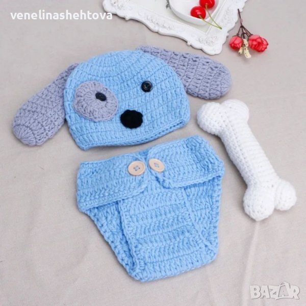 Комплект за фотосесия за момченце от 0-6м. от три части,кученце.