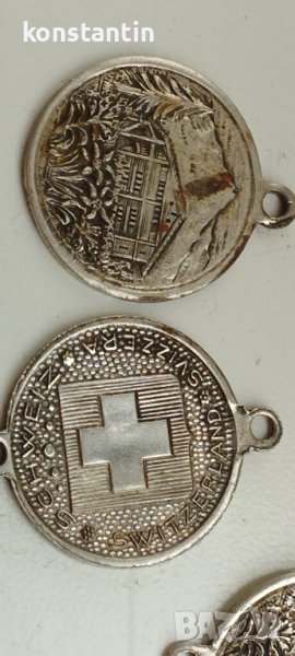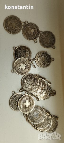 На части;16 бр.монети-имитаций Швейцария;бял метал.