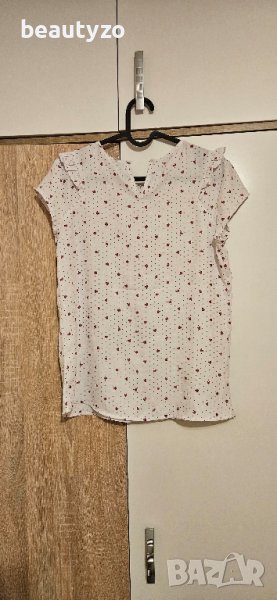 Дамска риза от приятна материя на Reserved, размер S. Ризата е елегантна, на сърца и подходяща за офис или корпоративно събитие. С връзки отпред, които довършват елегантната визия.