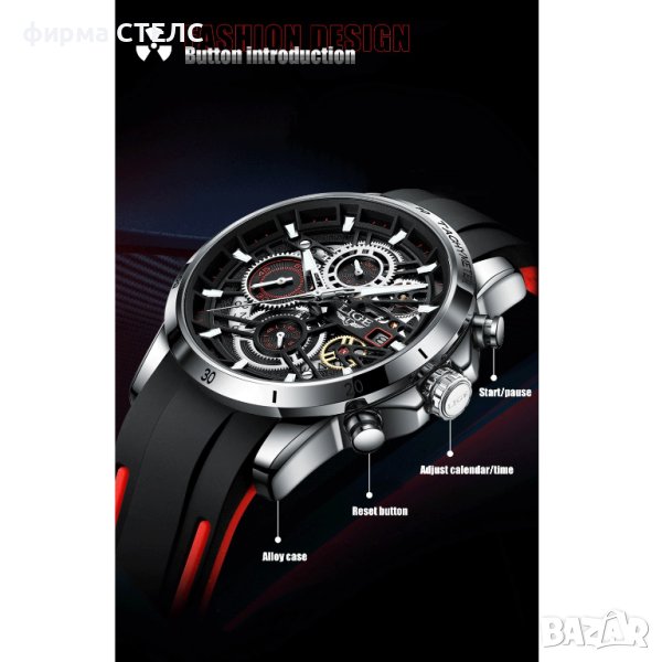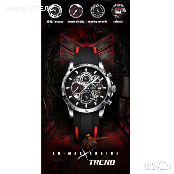 Мъжки часовник Lige, Хронограф, Водоустойчив, Силиконова каишка