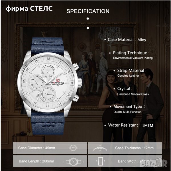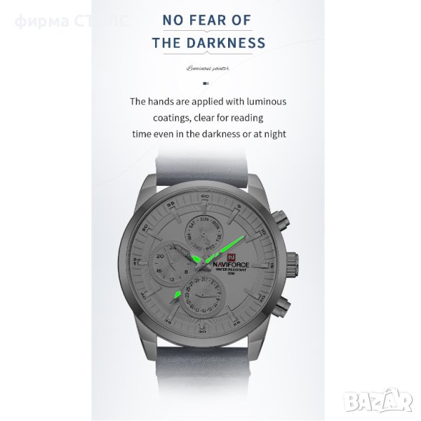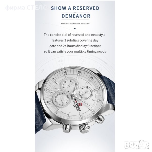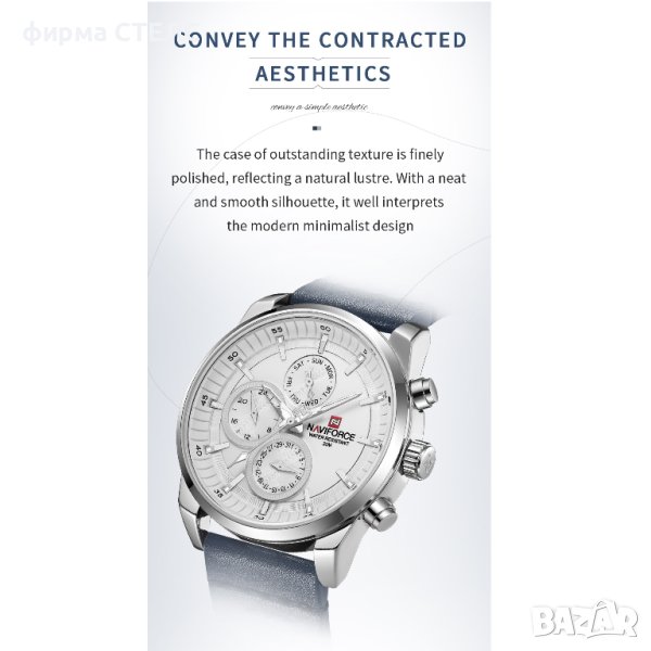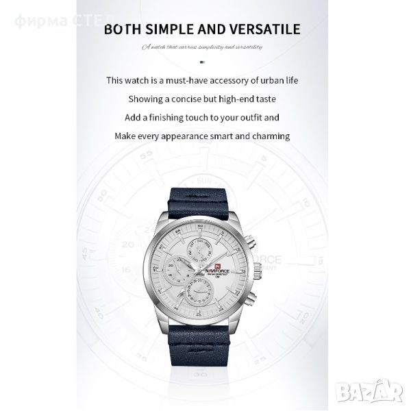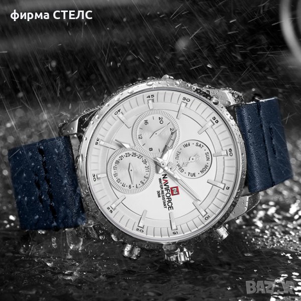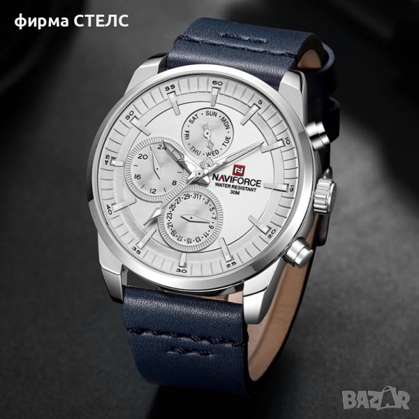 Мъжки часовник Naviforce, Кожена каишка, Син / Сребрист