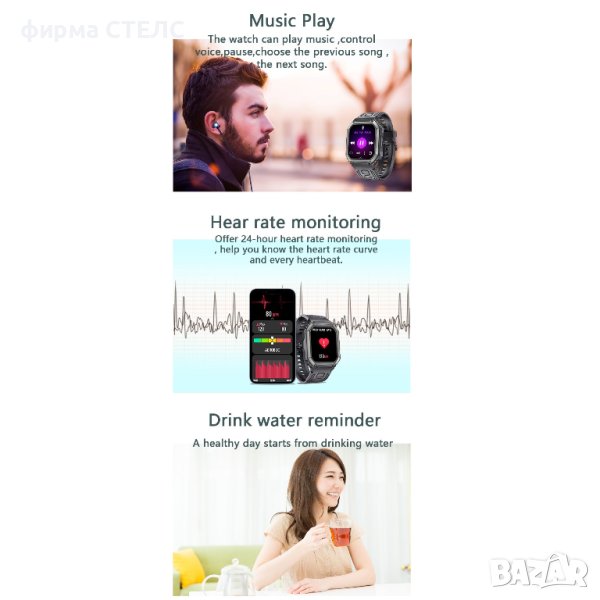Смарт часовник STELS KR60, Водоустойчив IP68, Силиконова каишка