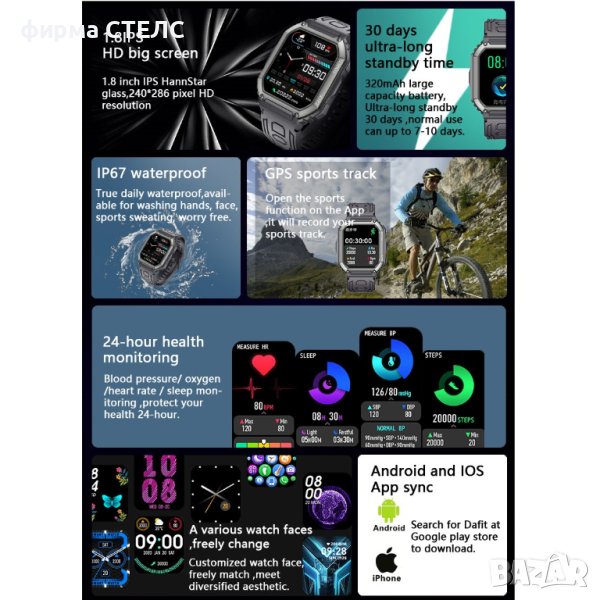Смарт часовник STELS KR60: 1,8-инчов Hancai стъкло IPS резолюция 240x286.