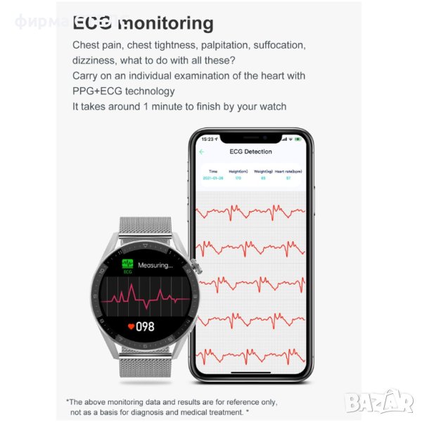 Функция сърдечен ритъм ECG+PPG чрез приложение. Водоустойчивост IP67