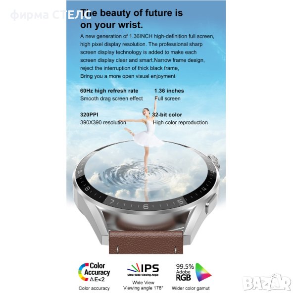 Смарт часовник STELS DT3 plus разполага с 1,36-инчов кръгъл HD екран с