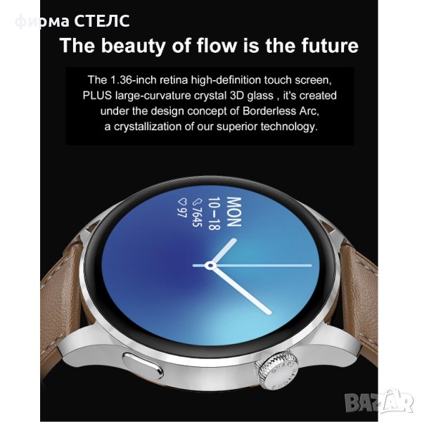 Смарт часовник STELS DT3 има кръгъл дизайн, който изглежда много