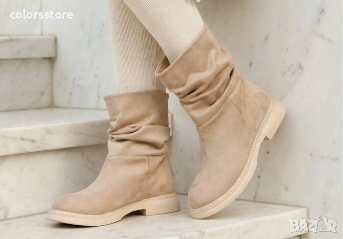 Равни боти - бежов велур - BNS8 , снимка 1 - Дамски боти - 41687627 1/1