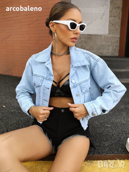Дамско модно свободно изрязано дънково яке, 2цвята