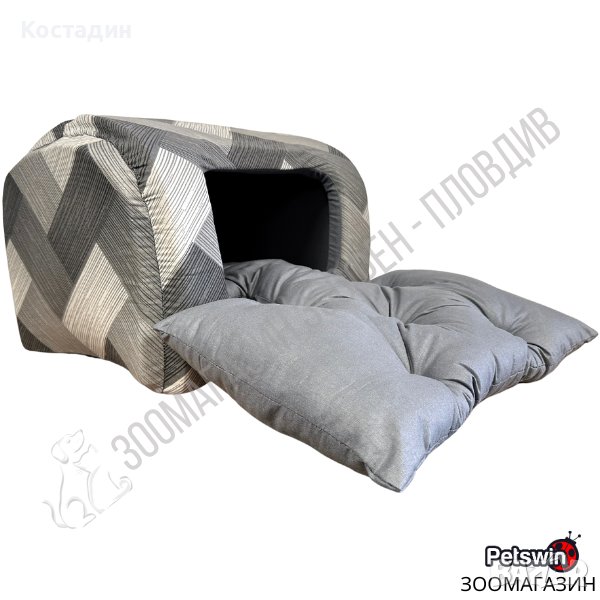 Уютна Къщичка/Легло - с Постелка - за Куче/Коте - 45см/35см/32см - Сива разцветка - PetsWin