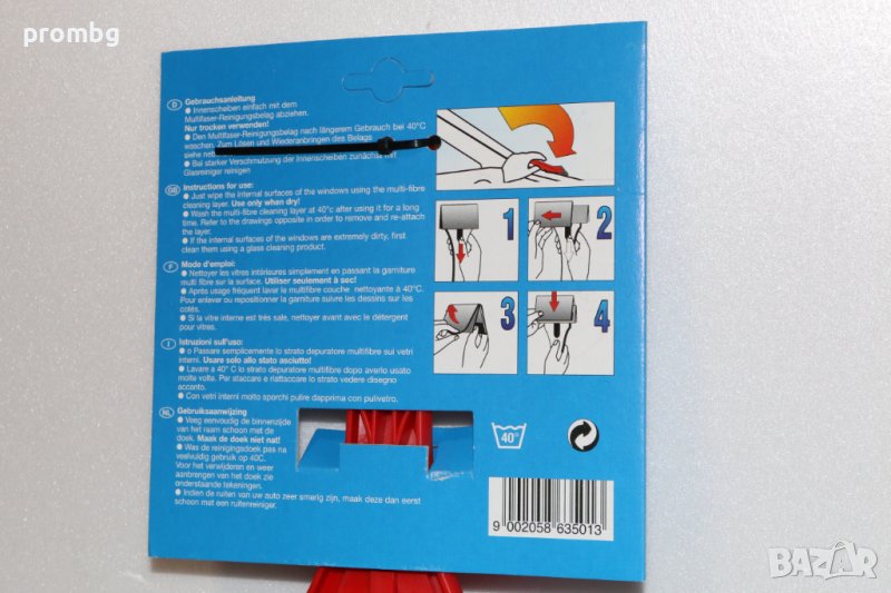 микрофибърна чистачка за автомобилни стъкла, нова, немска, внос от Германия, високо качество. Без вода и почистващи препарати, гъвкава глава. С две почистващи повърхности с размери 7.5 х 10.5 см. Може да се пере при 40 С.