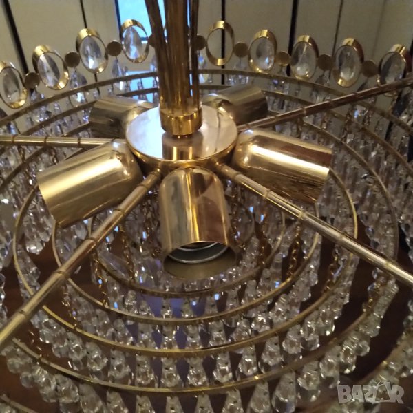 Полилея е от Америка великолепен тежък кристал основа позлатен месинг .,всички части могат да се разглобяват ,с 5 броя гнезда за големи крушки.