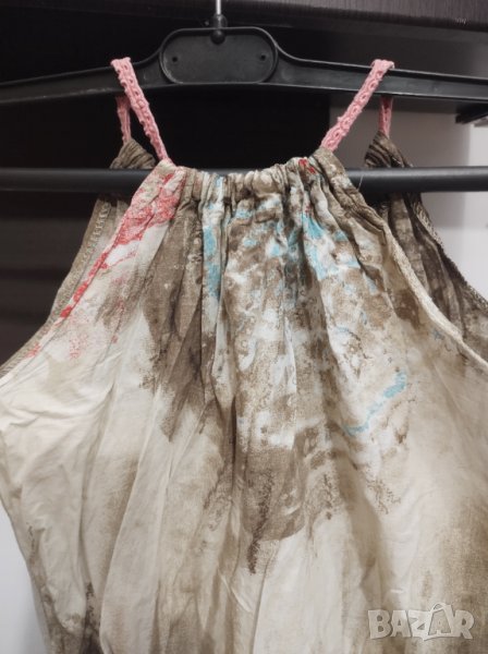 Лятна рокличка в кафява преливаща гама. С връзки на врата и ластик на талията.