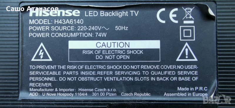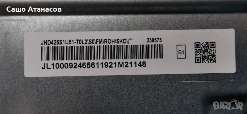 Модули от телевизор Hisense H43A6140 с дефектен Main Board (панел JHD425S1U51-T0L2 )
