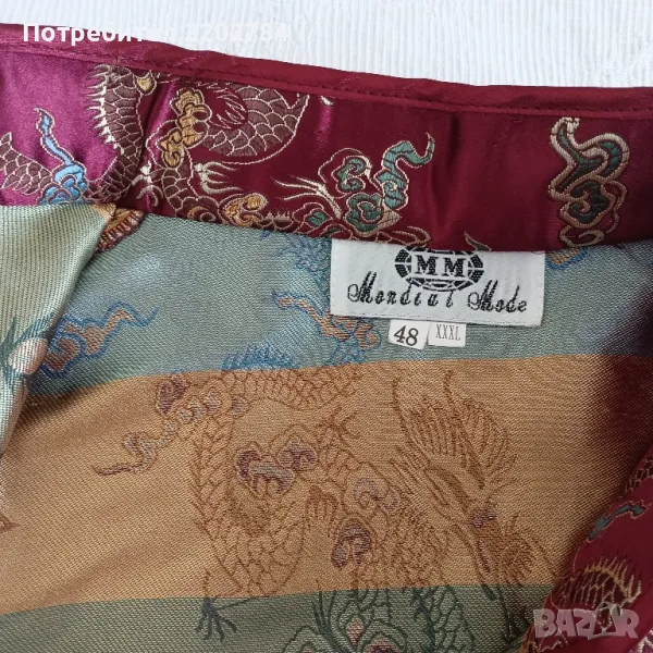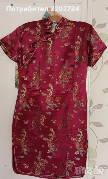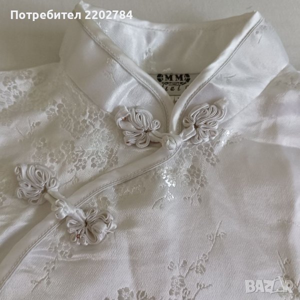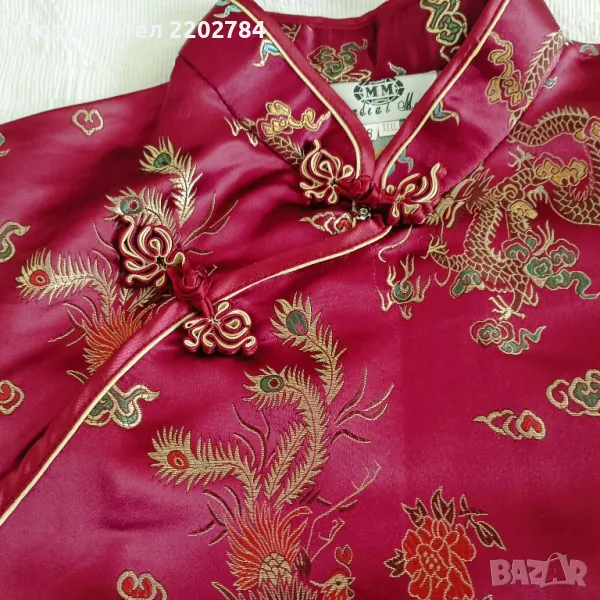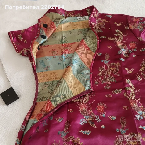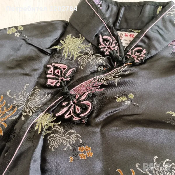 За по добра ориентация на размера са снимани по реда на снимките - рамене, гръдна обиколка, талия и ханш.Асиметрично закопчаване по диагонал,странични цепки -.истинска азиатска класика!