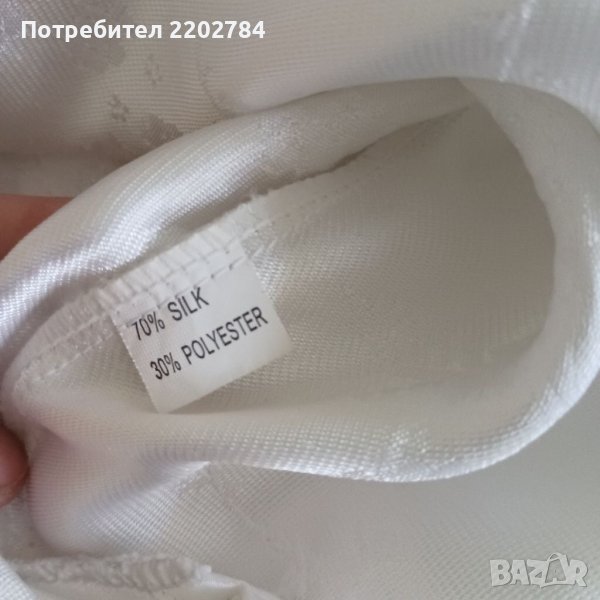Бялата има миниатюрно петънце в задната част до подгъва .Дължина 90см.