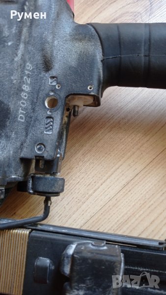 Пневматичен телбод Dutack N 750 Mg / 20-50 mm / 5-8 Bar в перфектно състояние с една забележка липсва спусака но това не му пречи да работи по никакъв начин , единствено защитата на пистулета не работи .