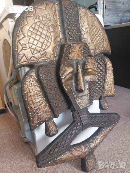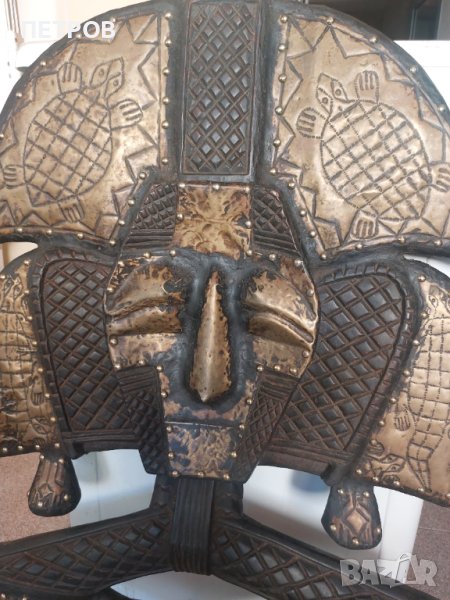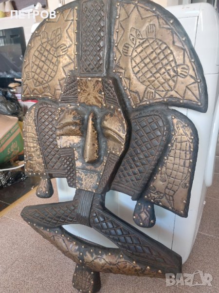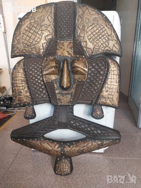 ПРОМО 23.02. 100% УНИКАТ. Уникално африканско пано. Размери 90/60см.Тегло -10кг.Дърво и метал-100% ръчна израбогка. МЕСИНГОВ ОБКОВ. СИМВОЛИКА - ПАЗИТЕТЕЛ НА ДОМА И СЕМЕЙСТВОТО. В отлично състояние и без забележка.Подобна произведение на изкуството е без аналог не само на евро пазара.Страхотно бижу за подарък,дом и т.н.100% автентично.Знам какво продавам,а и който има интерес знае какво предлагам и за това да не си губим взаимно времето.Произход -ГАБОН. КУПУВАНО Е ЗА 4000$. АКО ЖЕЛАЕТЕ МОЖЕ ДА ПРОВЕРИТЕ ЦЕНИ НА ПОДОБНИ ИЗДЕЛИЯ. ПРОДАВАМ ГО ЕДИНСТВЕНО ПОРАДИ ФИНАНСОВИ ПРИЧИНИ. На излишни въпроси не отговарям.Нека бъдем коректни.