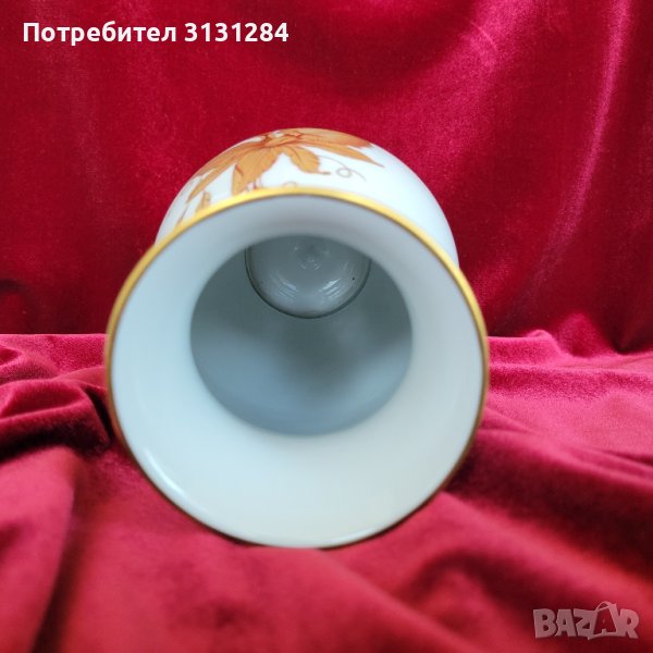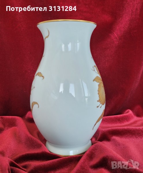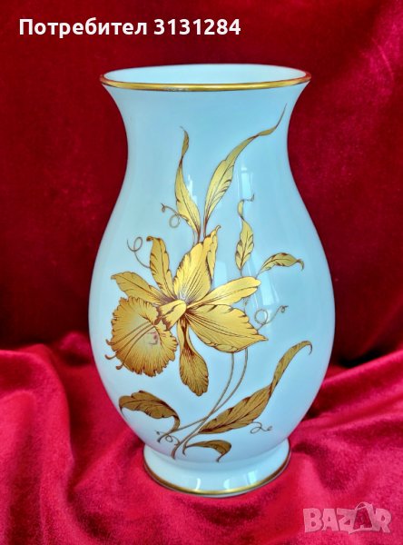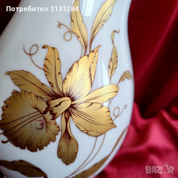 Разкошна ваза със златна орхидея от снежен висококачествен порцелан от стара немска фабрика. Височина 17 см, ширина 11 см. Перфектно състояние, като нов.