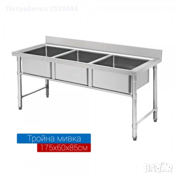 - тройна мивка с три корита с габаритен размер 150х60х85