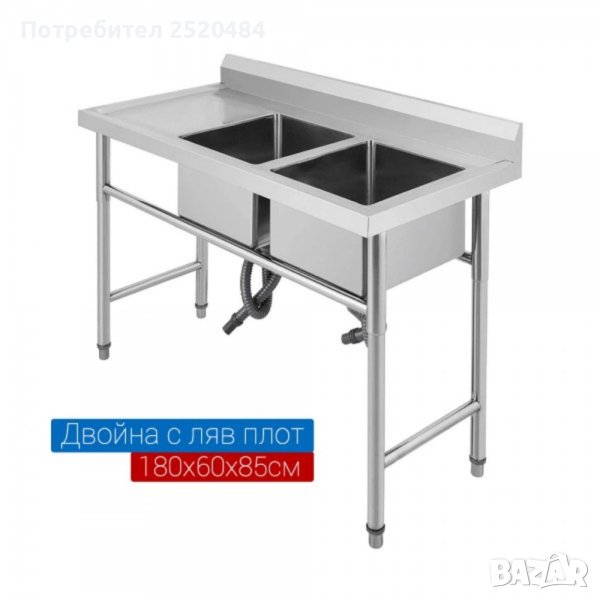 - двойна мивка с габаритен размер 150×60×85см дълж/шир/вис