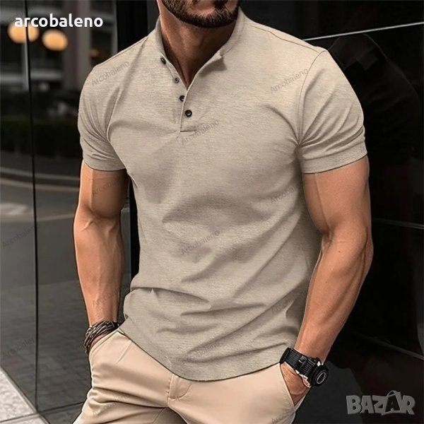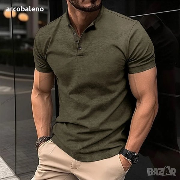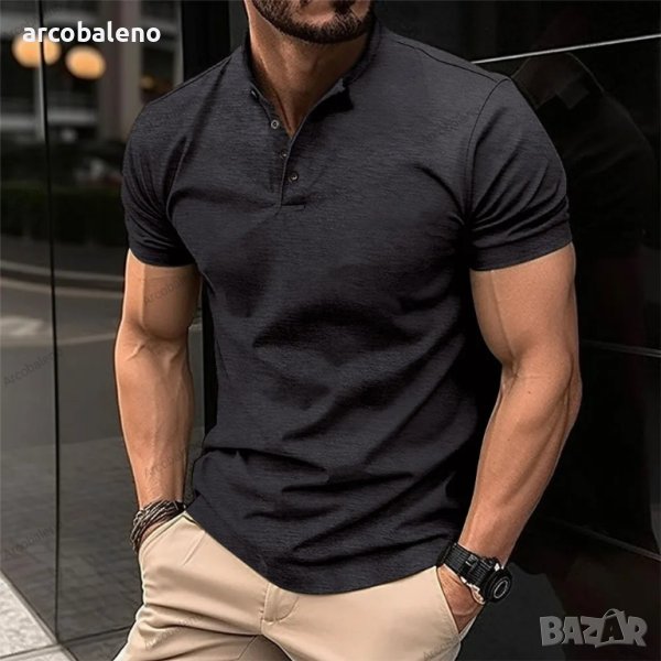 Мъжка тениска Henley Neck с копчета и яка, 5цвята