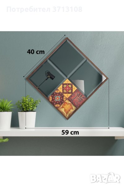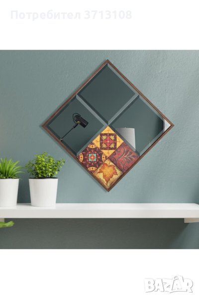 Огледало за стена с дървена рамка и декорация. Рамката на продукта е изработена от първокласен материал, борова дървесина, изцяло ръчно изработена.
