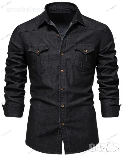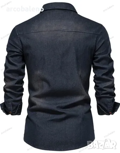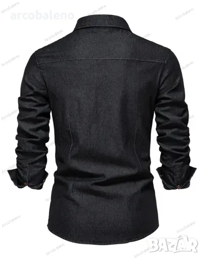 Мъжка ежедневна едноцветна дънкова риза с дълги ръкави, 4цвята