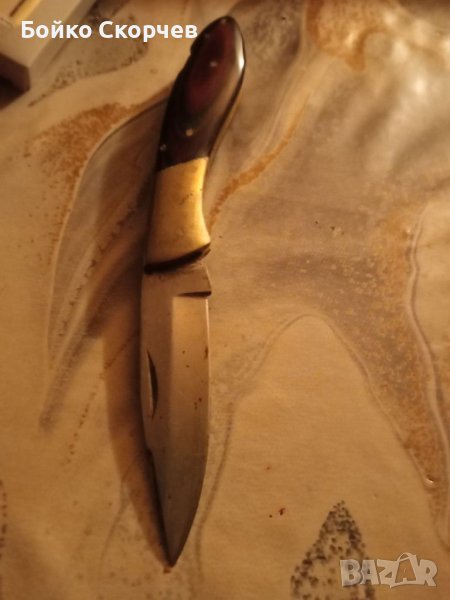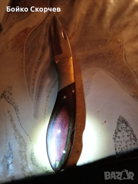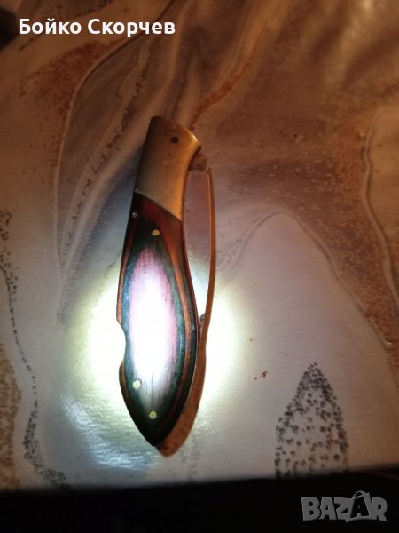Продавам джобно ножче с лакирана дръжка на ивици масивен нож цена 30 лева.