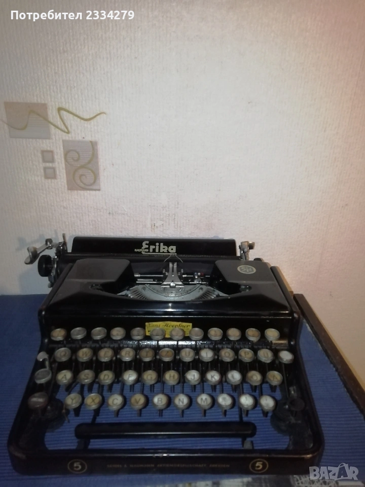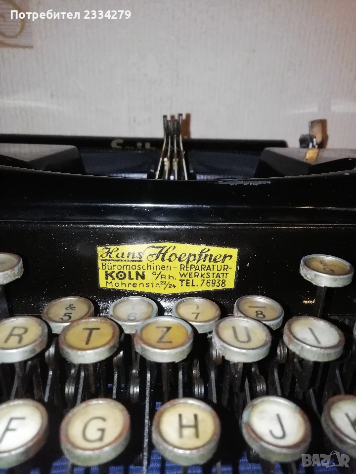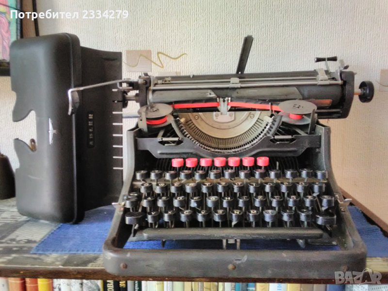 N:1 ,,ADLER" made in Germany,стара немска ръчно пишеща печатна машина,,латиница", цена 50€. ; N:2 стара българска пишеща машина поставена в кутия, в много добро състояние, работеща пишеща на кирилица, цена 15€. Запазени,работещи може да се ползват или декорация,колекция, цена без коментар. N:3 стара немска пишеща машина в много добро състояние модел 40-50те години, цена 70€.
