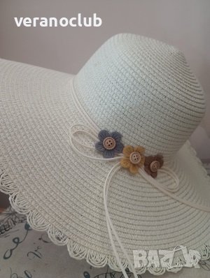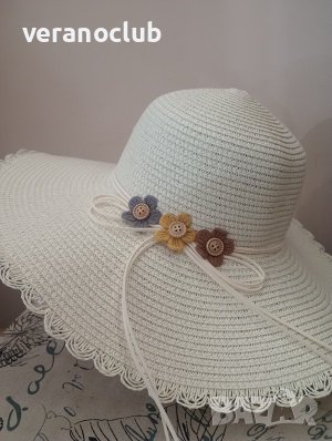 Много нежен дамски модел за летните дни. Дамска лятна капела в светъл цвят крем, украсена с красиви малки цветчета /три броя/.. Удобна и стилна шапка за плажа, за разходки в горещите дни, както и за специални моменти.