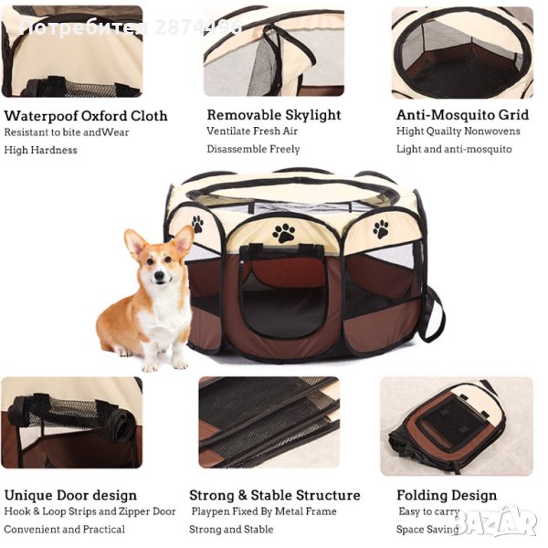 Нашата мрежеста кошара за игра на открито или закрито е проектирана да осигури на домашни любимци безопасна затворена зона, така че домашните любимци да могат да играят или да си почиват, независимо дали са на закрито или по време на семейно пътуване на открито. Кошарата за домашни любимци има подвижна горна плоча, отваряне с цип и 360-градусов отворен мрежест изглед, който може значително да подобри въздушния поток и е идеален за топло време.