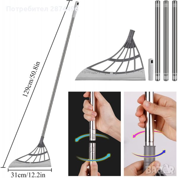 -Многофункционална метла: Помита, изсушава и почиства прозорците