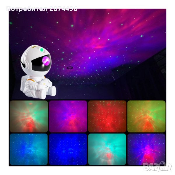 Лазерният проектор на галактиката с форма на астронавт ще бъде страхотна нощна лампа за малките покорители на космоса и една от любимите им играчки! 8 ярки, цветни изображения на галактиката ще оживят и украсят не само детската стая, но и парти, семеен филм или стая за игри. Разнообразието от светлинни ефекти ви позволява да изпитате напълно великолепието на звездното небе. Едно от основните предимства на проектора е неговата мобилност.