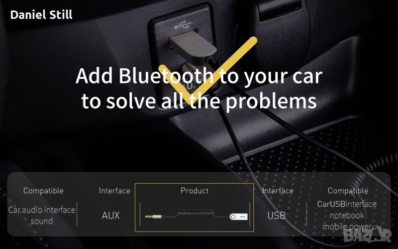 НОВ Baseus AUX Bluetooth адаптер Dongle Cable Handfree