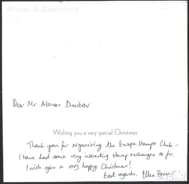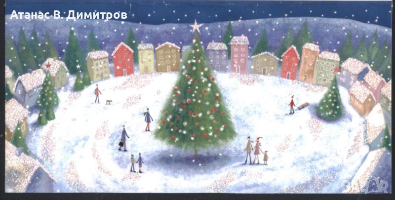 Поздравителна картичка Весела Коледа 2008 от Великобритания. Надписана.